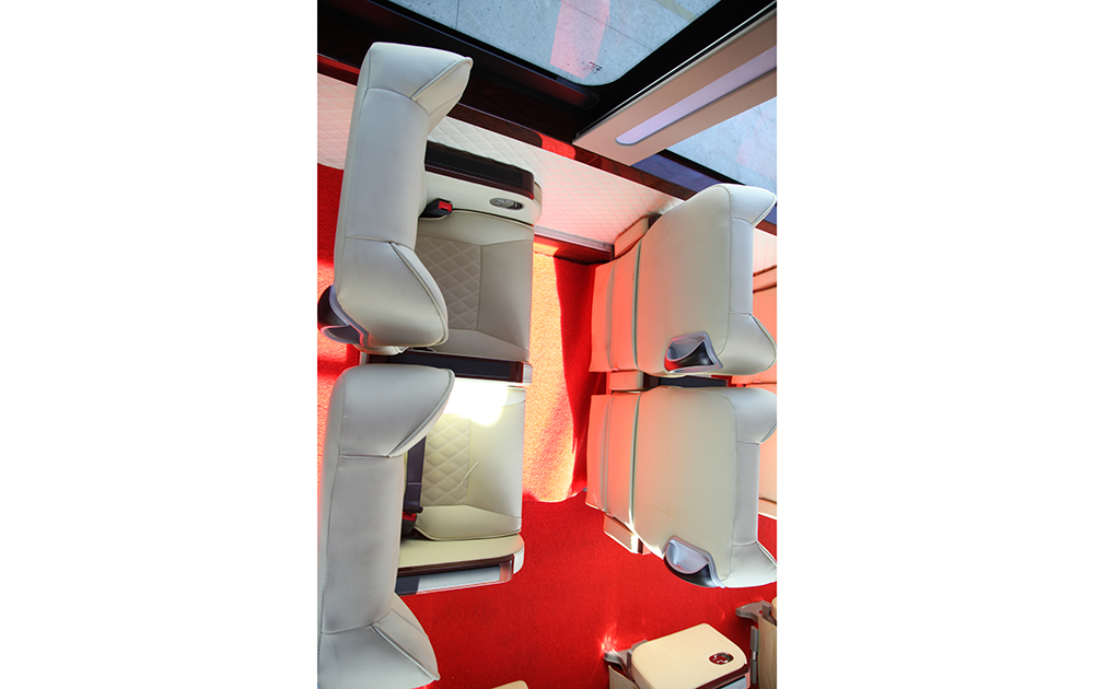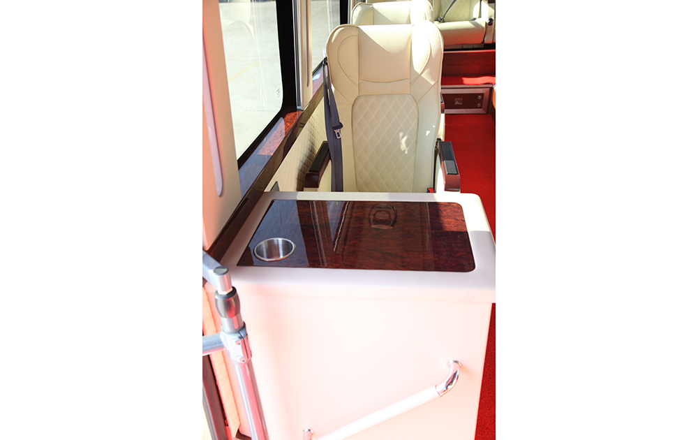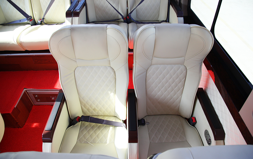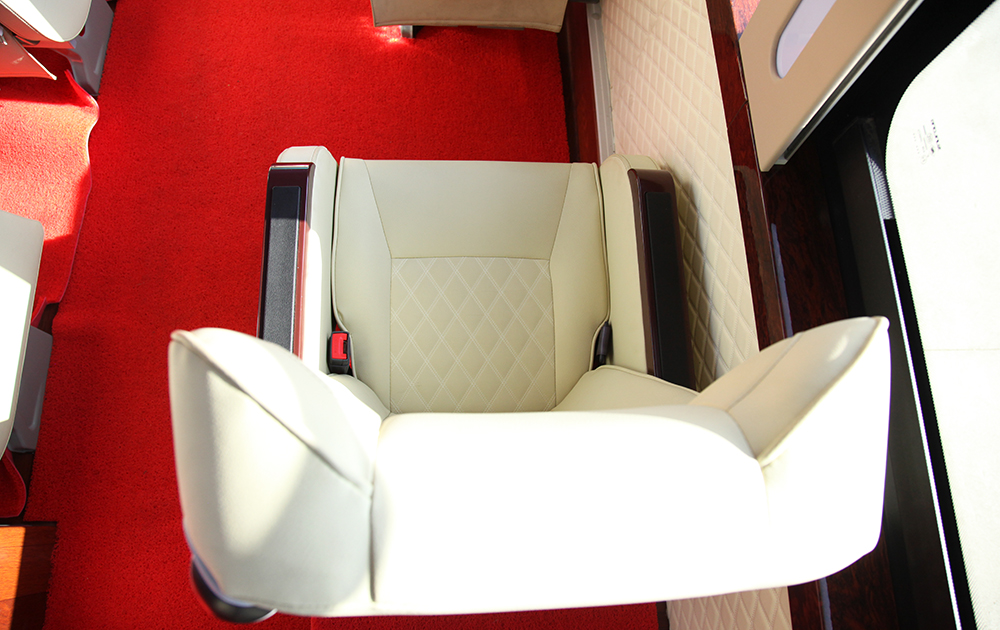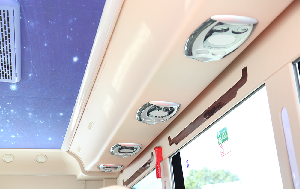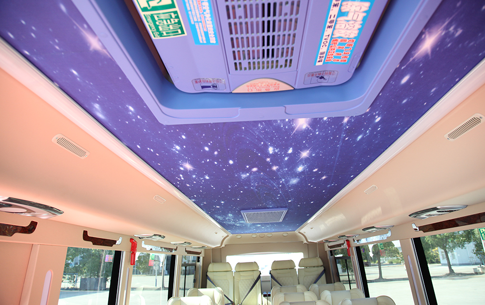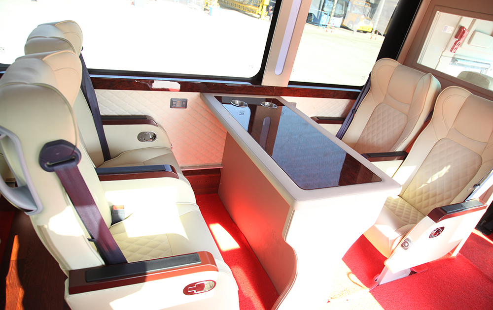 整車內(nèi)飾軟包,具有科技感的星空吊頂,豪華商務(wù)座椅,并配有一定數(shù)量的桌板,既能滿足辦公需要,又能滿足娛樂需要。