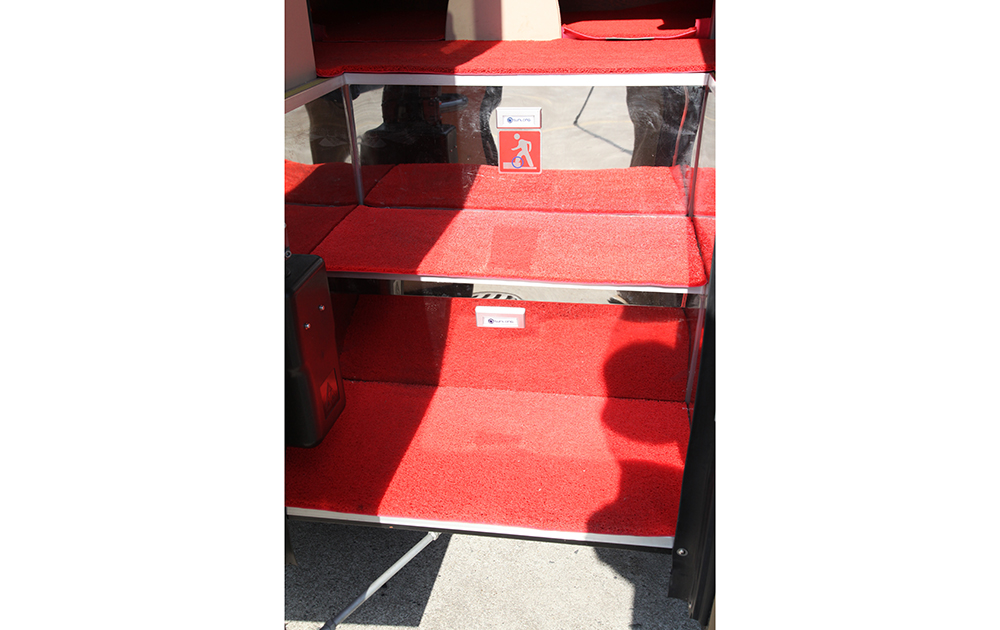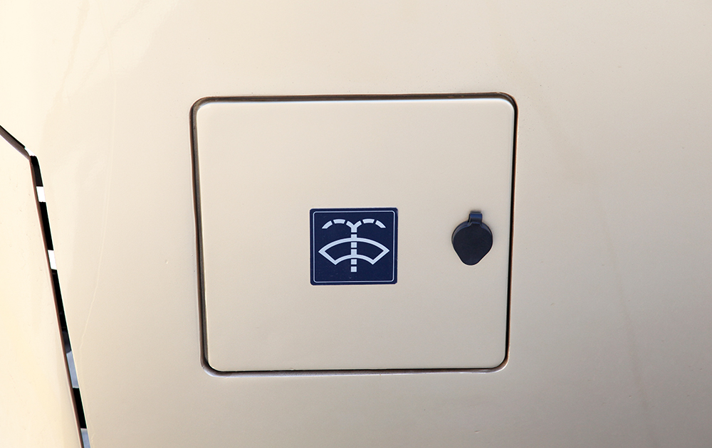 乘客門設(shè)在前輪后,司機后側(cè)與乘客艙有一定的隔離設(shè)施,既方便乘客上下車,又保證乘客區(qū)有一定的私密性。