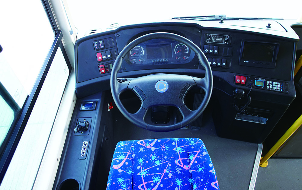 整車低地板設(shè)計(jì),配備ECAS懸架系統(tǒng),駕駛區(qū)安裝氣囊減震座椅、全液晶儀表,小型智能嵌入式投幣機(jī),一體式司機(jī)包圍結(jié)構(gòu),提高駕乘舒適性和安全性;