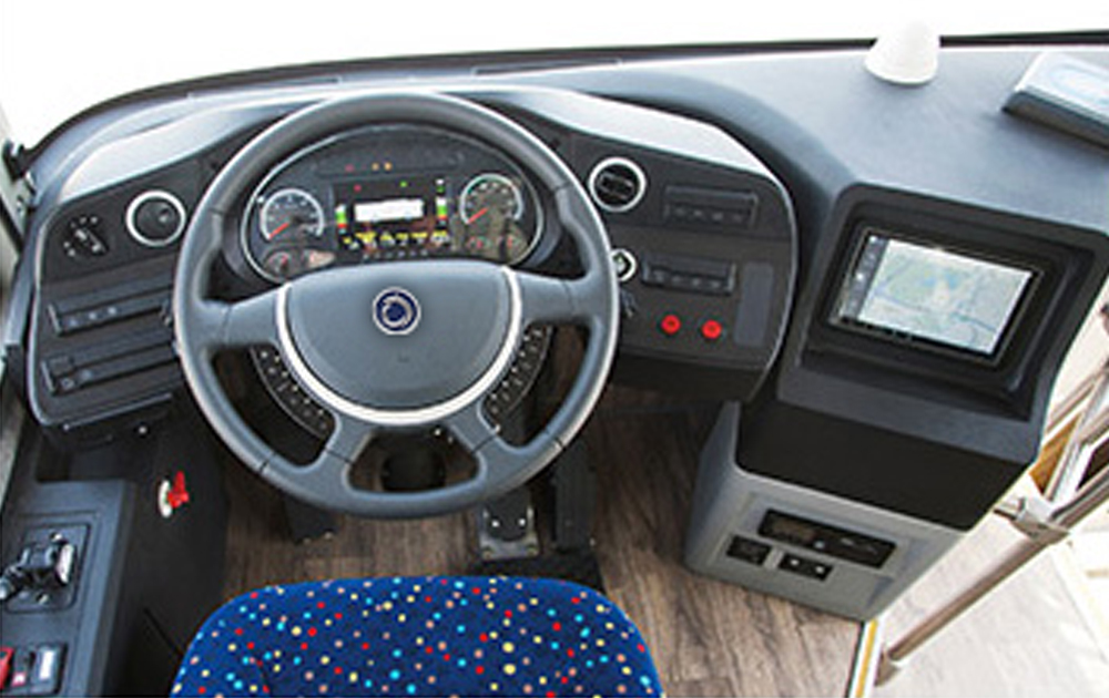 一體化儀表臺、全液晶儀表,駕駛區(qū)安裝氣囊減震座椅、小型智能嵌入式投幣機(jī),一體式司機(jī)包圍結(jié)構(gòu),提高駕乘舒適性和安全性.